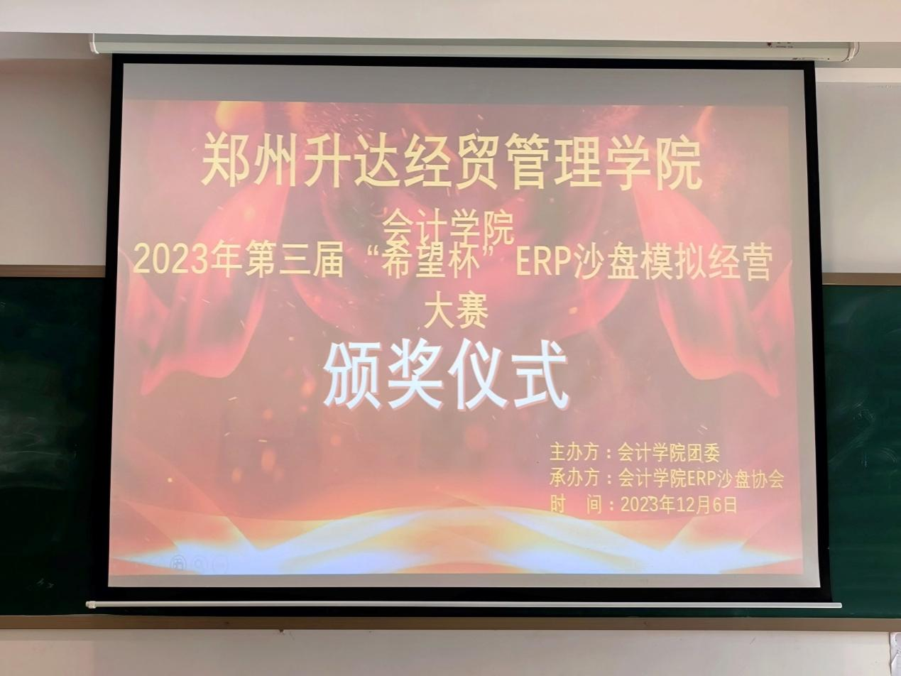 为了让同学们体验完整的企业经营过程,深入了解ERP的意义、作用以及科学的管理模式,培养大学生的团队协作精神,会计学院ERP沙盘协会于12月2日至3日在商管大楼成功举办了会计学院第三届“希望杯”ERP沙盘模拟经营大赛。赛后举行了颁奖仪式。