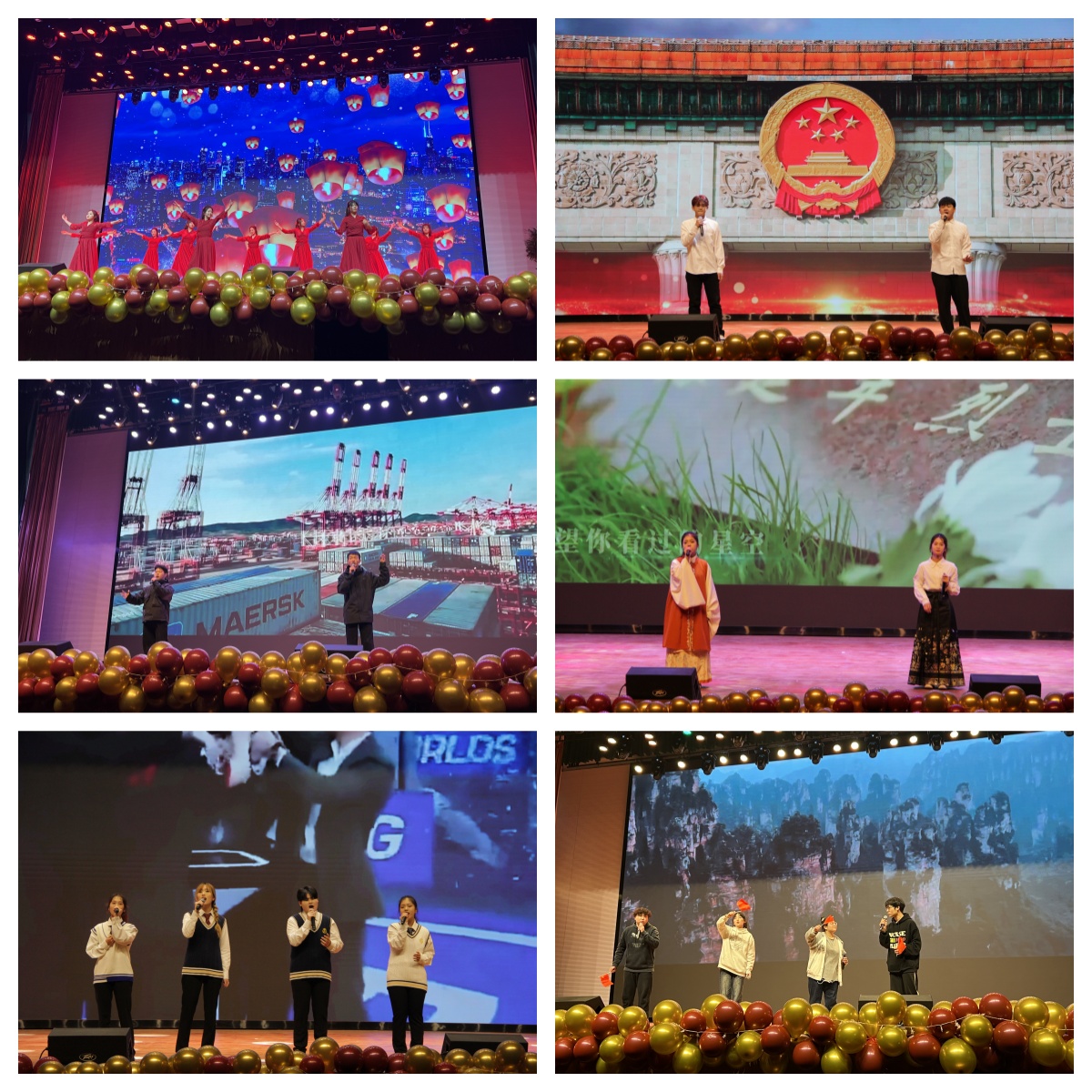 晚会在开场舞《灯火里的中国》中拉开了序幕,伴随着优美的旋律,让大家爱国的情感无限升华。歌曲《强国一代有我在》、《星火青春》、《错位时空》、《我们都是追梦人》、《明天会更好》唱出了生逢盛世的青年学子注定不负盛世,愿以吾辈之青春,传前辈之火炬,昭盛世之中华。