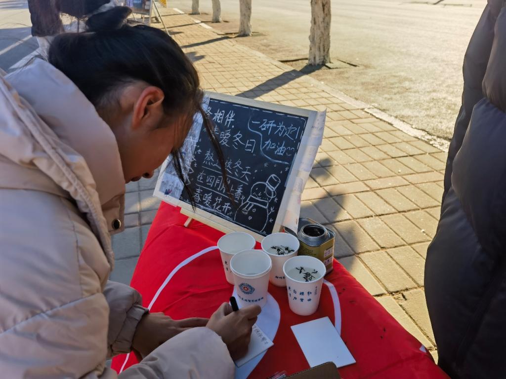 冬日有回音,研途有温情。为了帮助会计学院考研学子缓解考前压力,增强备考信心,会计学院微益青年志愿者协会于12月21日下午在明德广场前举办了“研路相伴,情暖冬日”活动。