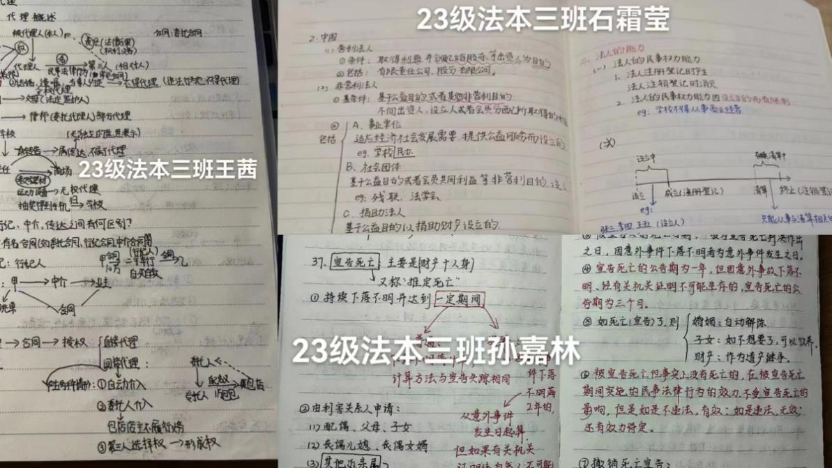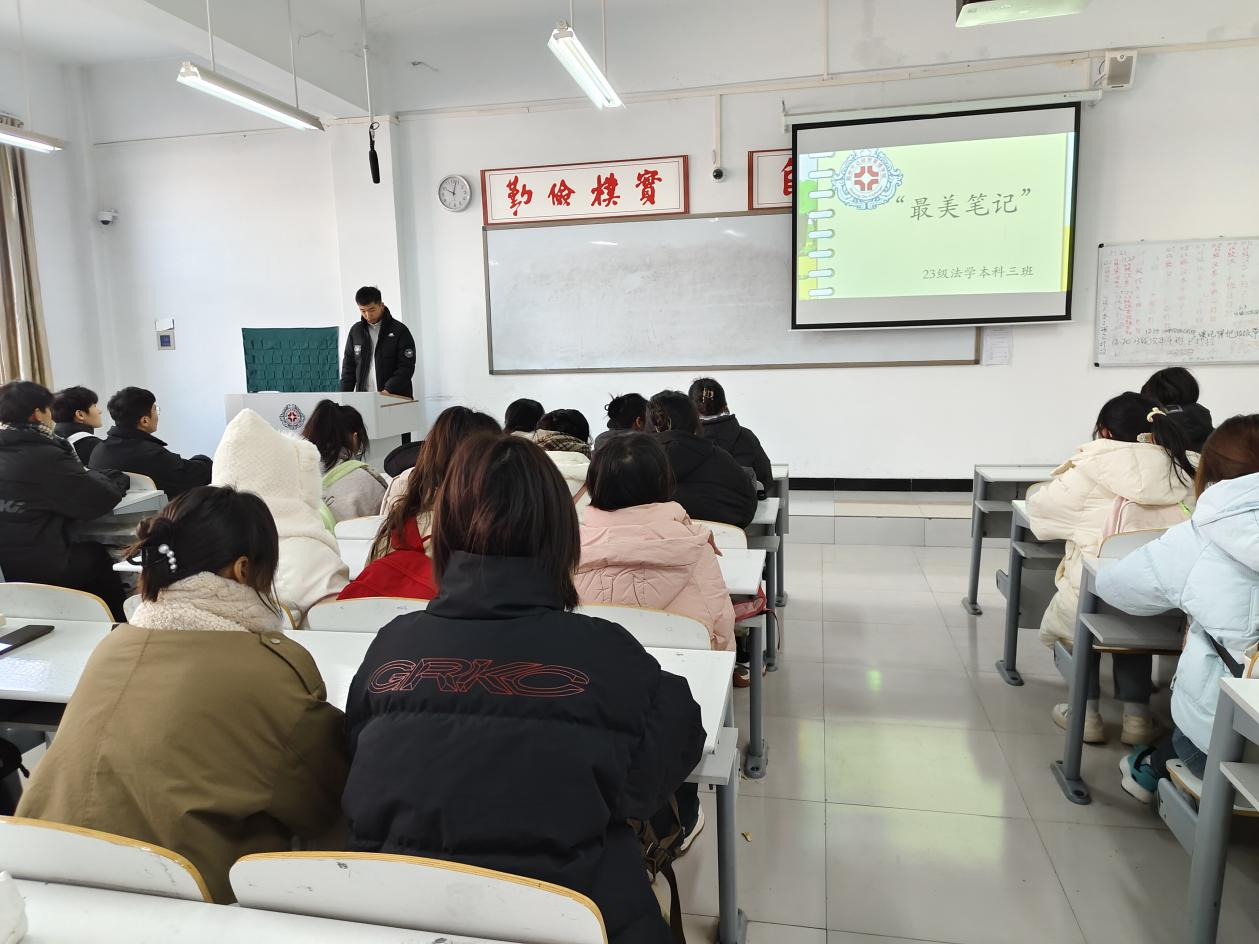为倡导学生养成良好的学习习惯,提升笔记整理能力,提高学生学习积极性,文法学院2023级法学专业在李晓田老师的带领下于近日举办“执勤奋之笔,书好学乐章”——最美笔记展示暨读书会活动。