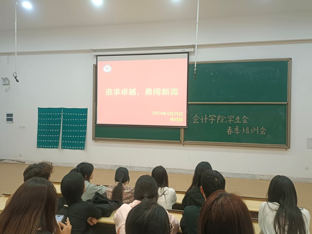 为了提高学生会干部的工作能力以及服务意识,提高学生自我服务、自我管理、自我教育、自我监督的意识和能力,会计学院学生会于4月29日在教学4号楼118教室开展春季学生会干部培训会,本次会议由体育部部长刘翔主讲,学生会主席团成员和全体部长到会学习。