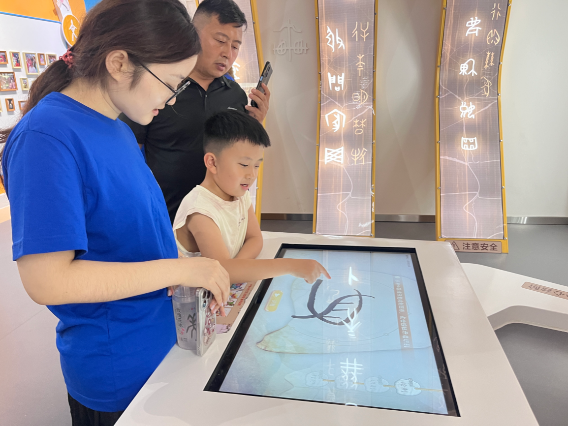 活动接近尾声时,实践团成员来到展馆互动区,主动化身“小小讲解员”,热情地向参观的游客介绍甲骨文相关知识,还手把手教大家书写简单的甲骨文字。一位参与体验的小朋友兴奋地说:“原来汉字这么有趣,像画画一样!”成员们用青春活力架起文化传播的桥梁,让更多人感受到古老文字的魅力。