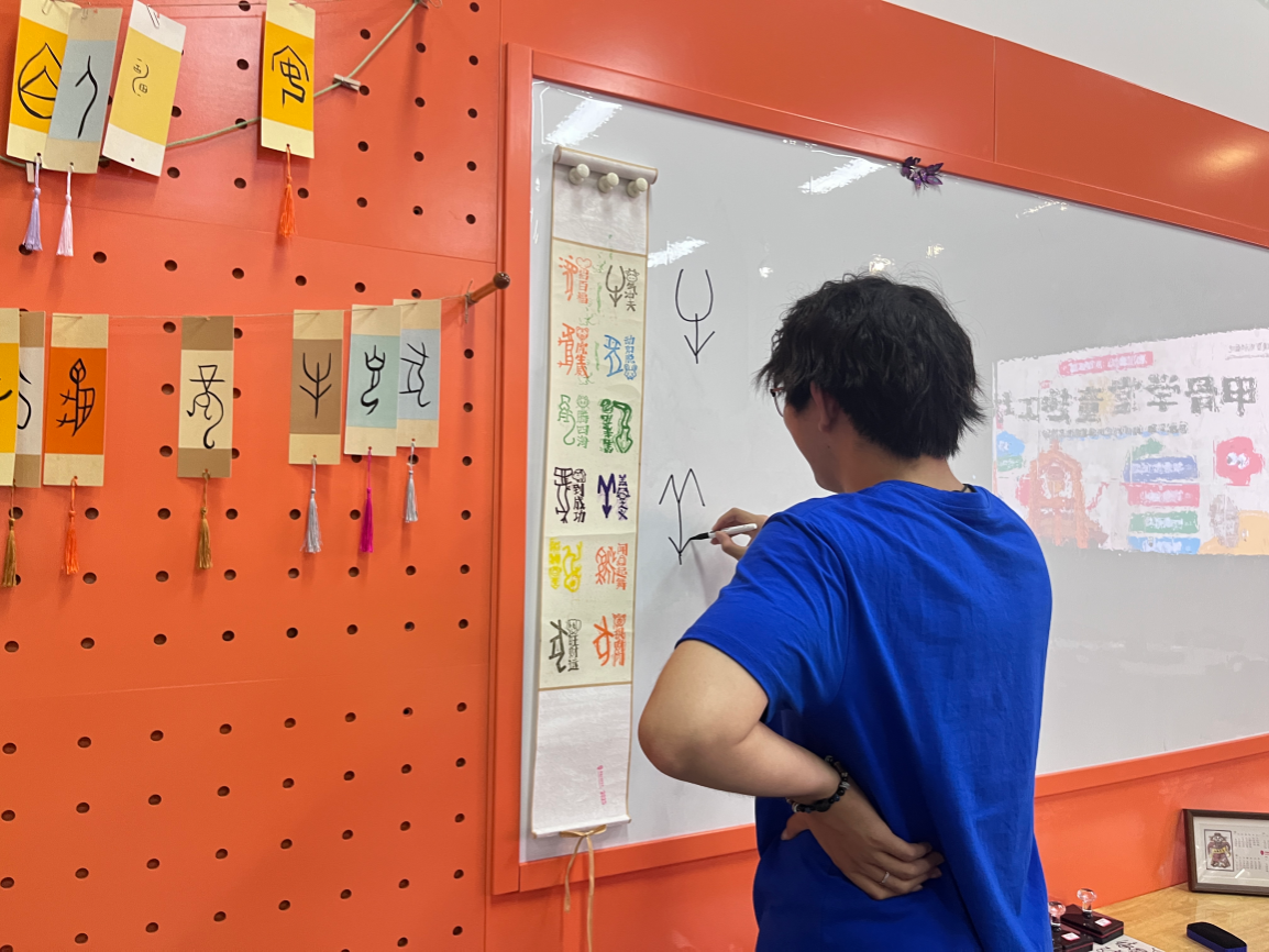 参观学习过程中,在工作人员的专业指导下,团队成员们亲身体验了甲骨文书写。手握着笔,一笔一划认真临摹,在笔墨流转间感受古老文字的书写韵律与独特韵味。随后,大家还通过制作文字书签、临摹经典典籍等形式,进一步加深了对汉字构造规律和丰富含义的理解,让抽象的文字知识变得可触可感。