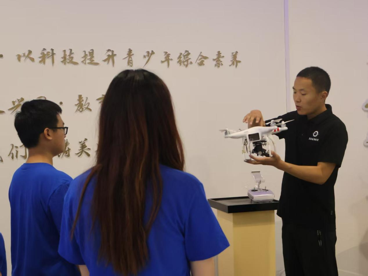 从载重仅2.4公斤的航拍精灵,到可负载20公斤农药箱的植保巨兽,再到机翼可折叠的垂起固定翼巡线机,通过参观实体机型与零部件剖视图为队员们展现了现有无人机设备的全景图。