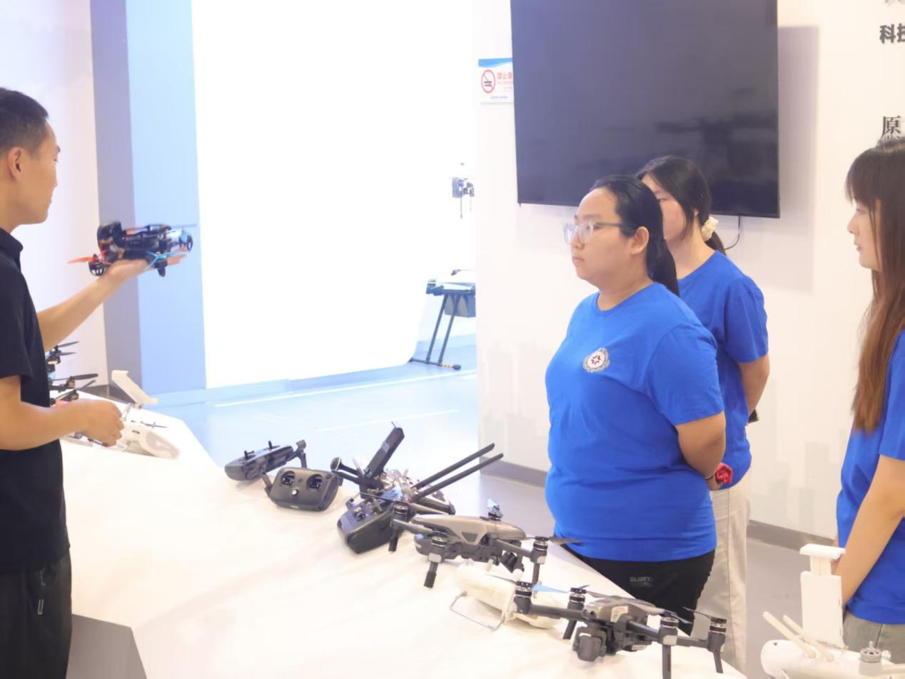 团队移步至基地的无人机销售及维修区时,负责人向队员指出“无人机维修作为新兴服务领域潜力显著,其技能认证由人社部颁发职业技能等级证书,与飞行执照分属不同体系,对大学生职业发展具有实用价值”。