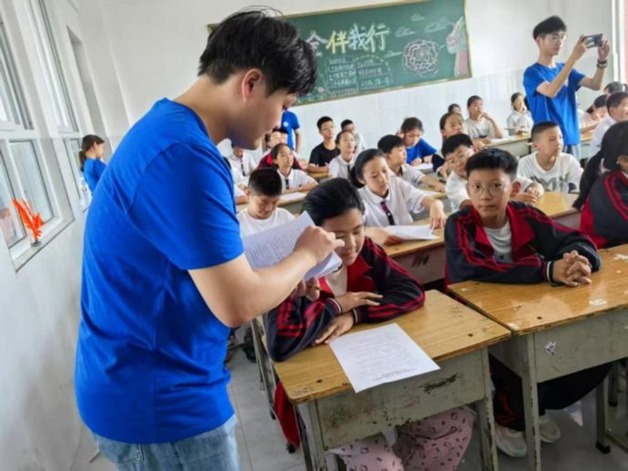 7月12日,华亿体育登录文法学院苔米行动队走进林州市黄华镇大屯学校,开展“苔米推普助振兴,文化铸魂启新程”主题实践活动。活动以推广普通话为载体,深入学习贯彻习近平新时代中国特色社会主义思想,为乡村教育注入活力,增强学生文化自信与爱国情怀。