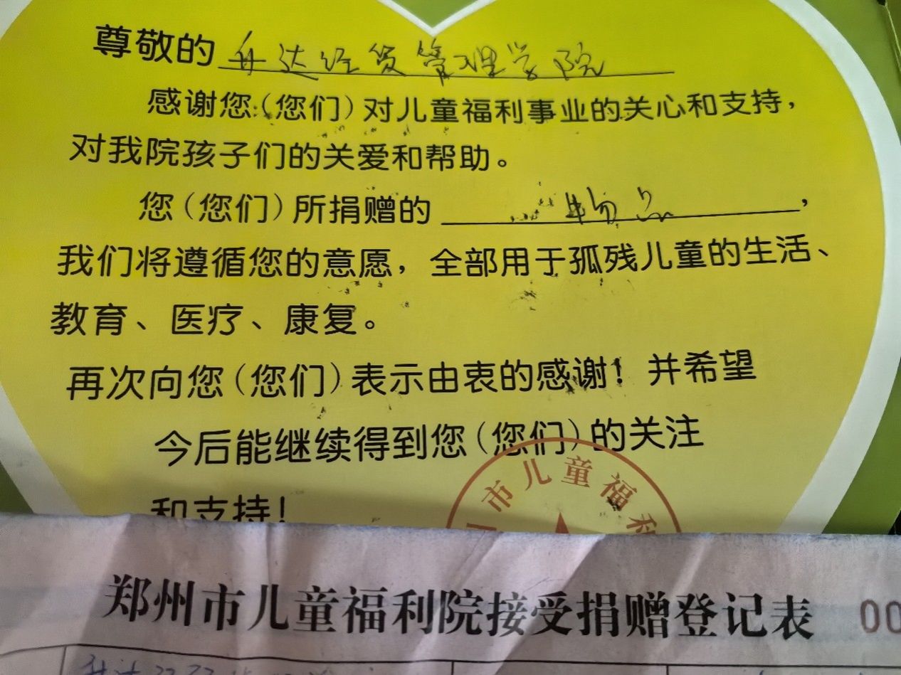 图5:向郑州儿童福利院捐赠物资凭证及登记表