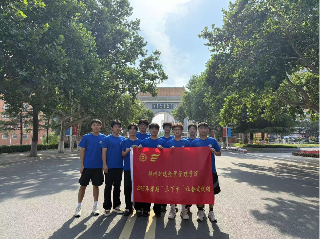 7月1日,实践团成员身着统一队服,整齐列队。他们手中的“2025 年暑期‘三下乡’社会实践团”的旗帜鲜艳夺目,背后是队员们满怀的热忱与担当。在指导老师祖鹏阳的带领下,团队从校园出发,跨越城市喧嚣,向着黄河沿岸挺进,开启一场与母亲河的深度对话,誓要用青春力量为黄河护航。