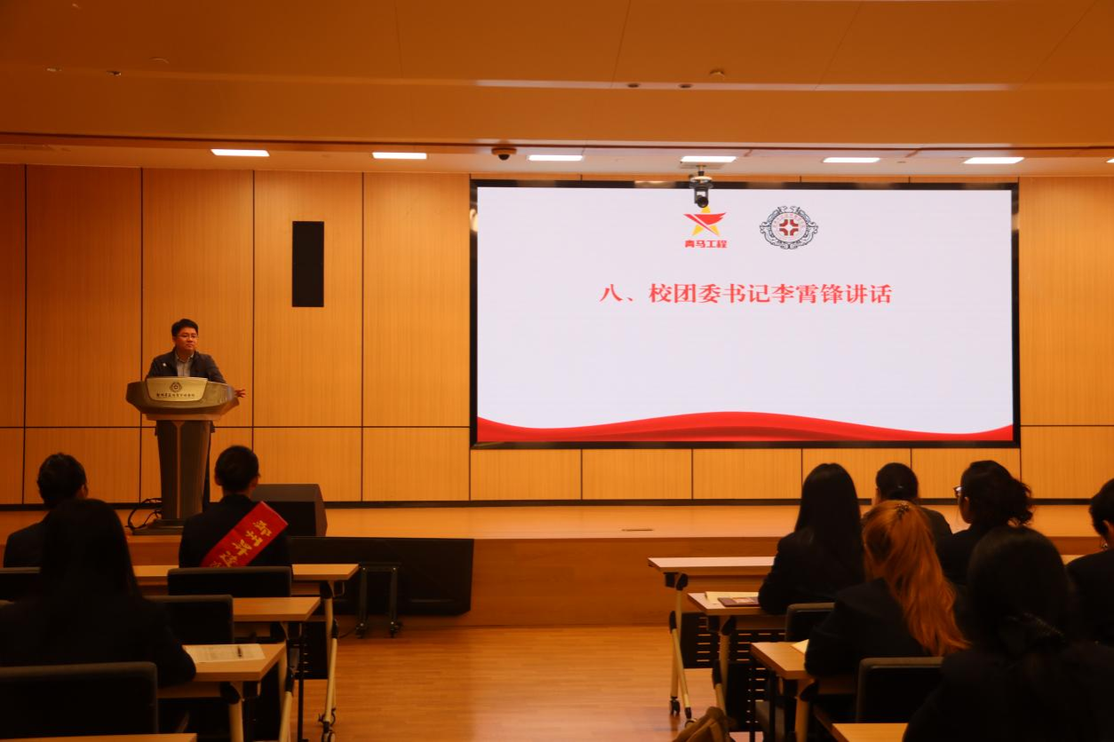 最后,校团委书记李霄锋发表讲话。他围绕“为什么办‘力行班’”“为什么今年要启动‘艺文班’”两大核心问题展开交流,强调“力行班”旨在培养思想政治过硬、实践本领扎实的学生骨干,而“艺文班”是学校创新人才培养模式的重要探索,通过马克思主义与艺术人文的融合,拓宽学员成长维度。他鼓励全体学员在培养过程中主动学习、积极实践,边成长边提升,将个人发展融入学校育人目标与国家发展大局,以青春之力书写担当。