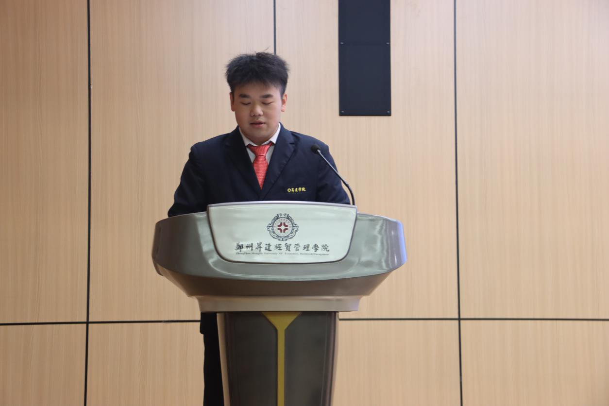 “艺文实验班”第一期学员代表袁翊畅表态,他指出艺文实验班是马克思主义理论与艺术人文素养融合的创新平台,承诺全体首批学员将珍惜机遇、潜心向学,做到知行合一、勇于实践,发挥模范带头作用,以文化活动服务同学、繁荣校园,助力自身成长为兼具格局担当与人文情怀的青年力量。