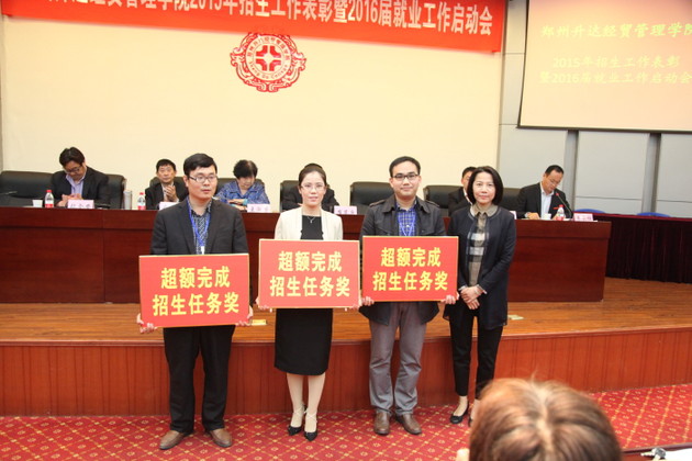 董事长王淑芳对2015年招生工作成绩的取得表示祝贺,并宣读了学院对招生工作的奖励表彰决定。会议表彰了在今年招生工作中取得优异成绩的团队和个人。